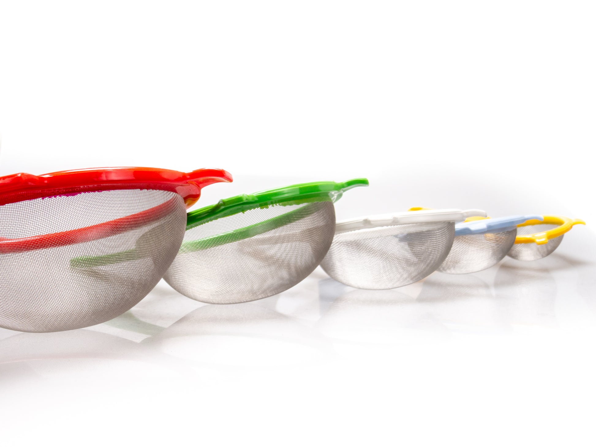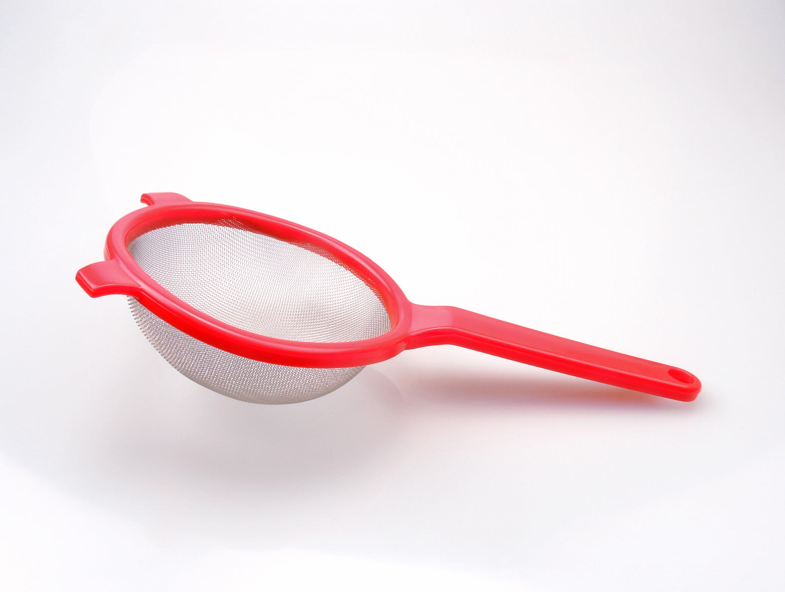 Colino in plastica con rete a maglia fine in acciaio inox, pratico e resistente. Ideale per scolare frutta, verdura, pasta e riso.