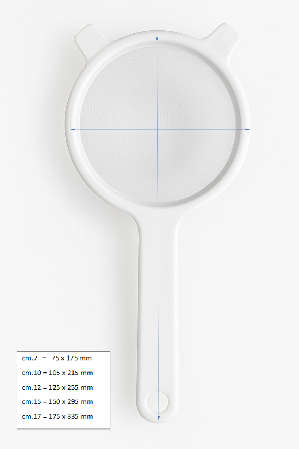 Pratico e resistente, la rete in acciaio inox AISI 304 garantisce resistenza alla corrosione e massima igiene, mentre il bordo in polipropilene offre una presa sicura e confortevole.